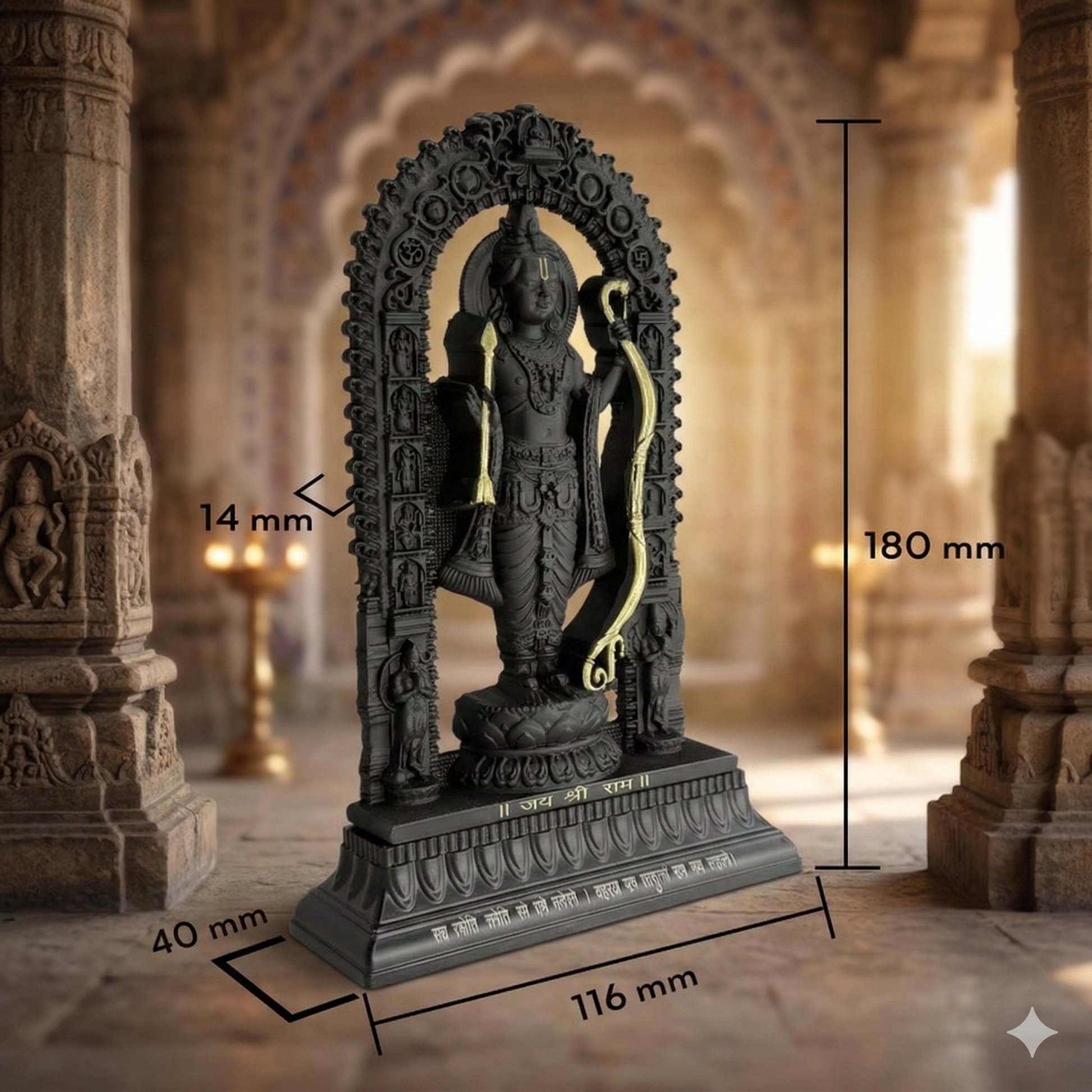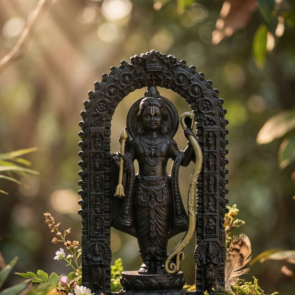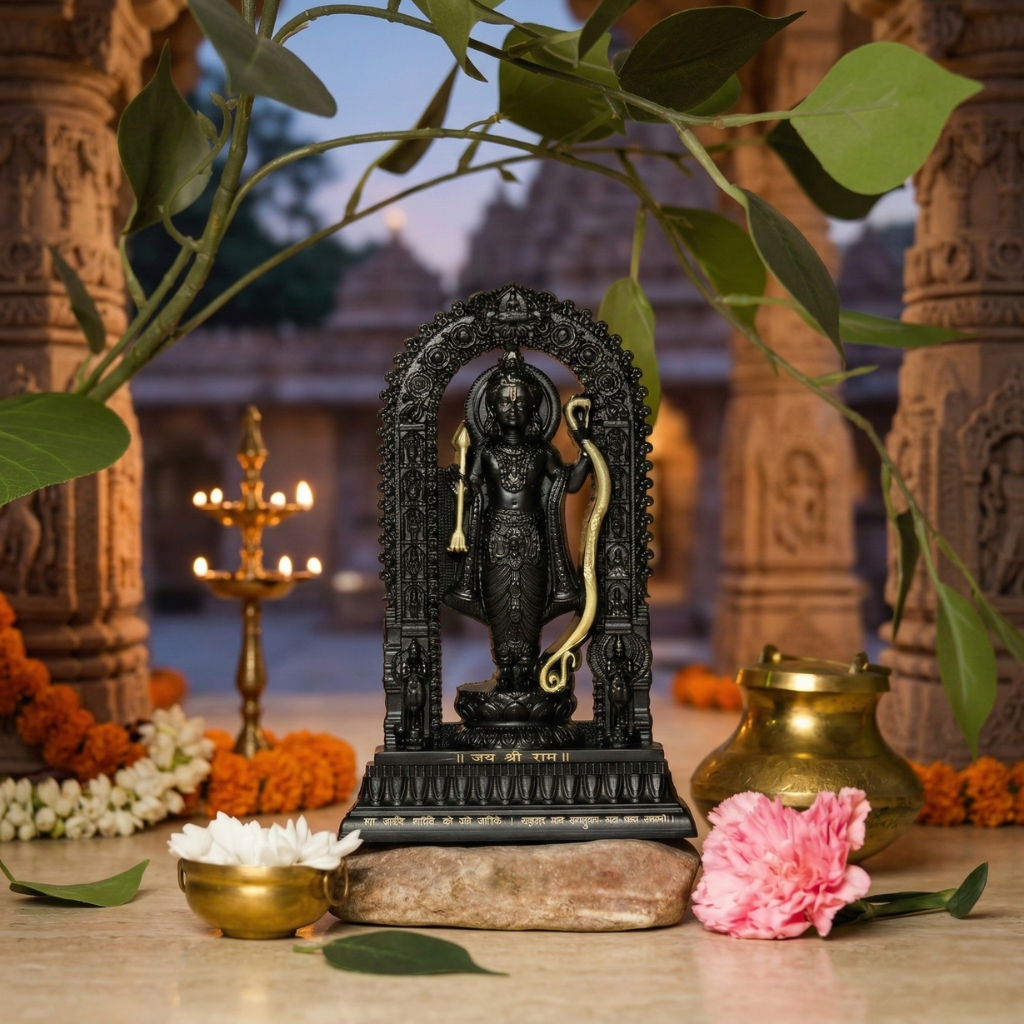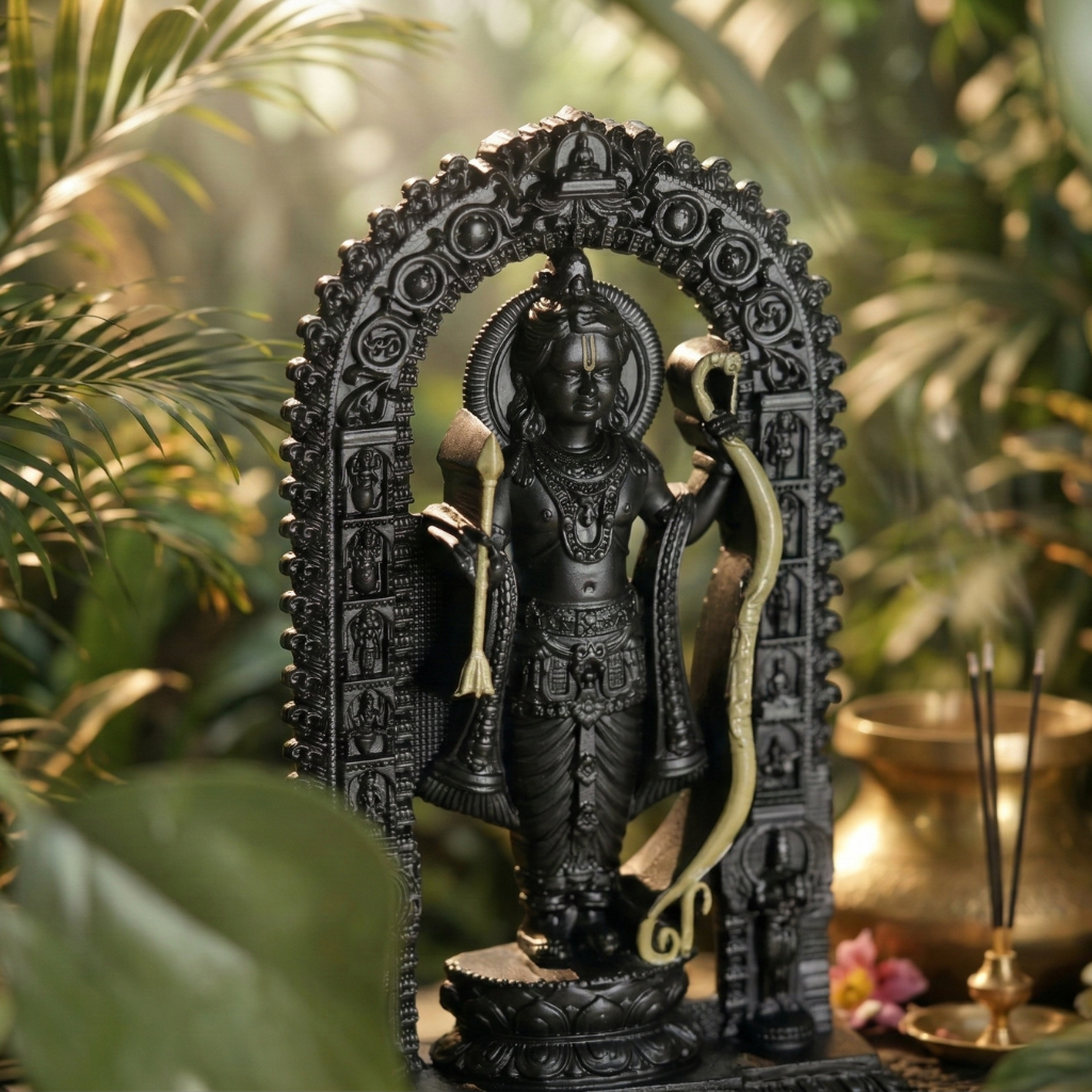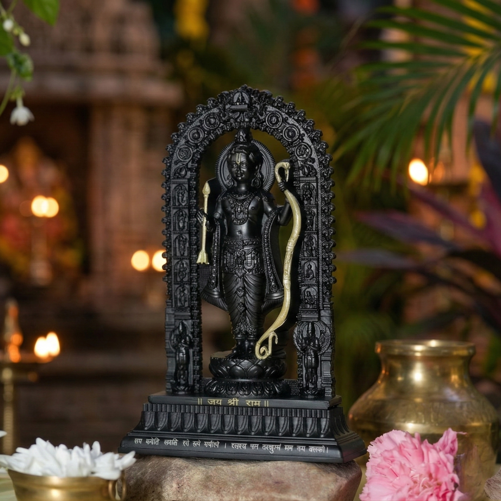 Shree Ram Lalla Murti – 7" Black & Gold Divine Idol