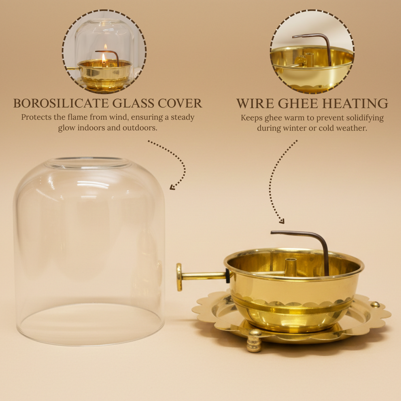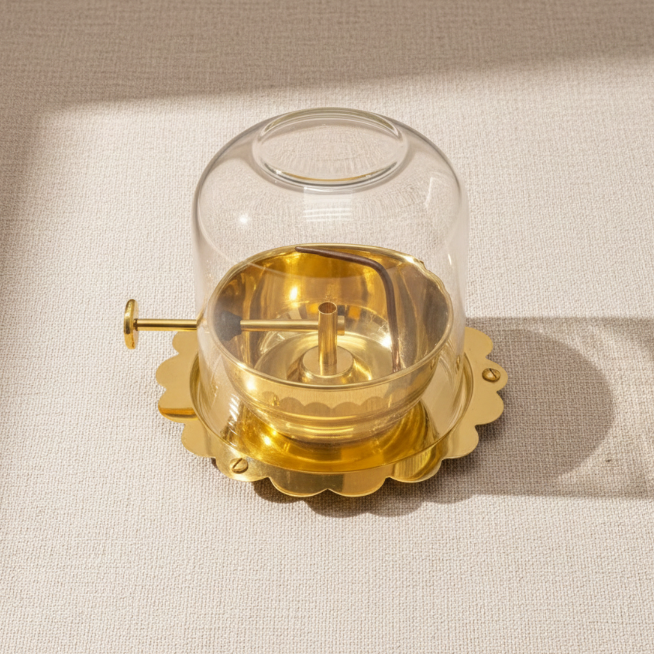 Large Akhand Jyot Diya – Premium Brass Diya with Glass Cover & Easy Wick Lifter