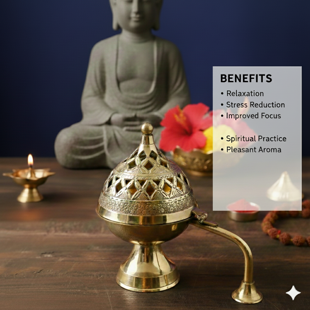 Handcrafted Pure Brass Loban Dhoop Burner: Elevate Your Home with Spiritual Aroma